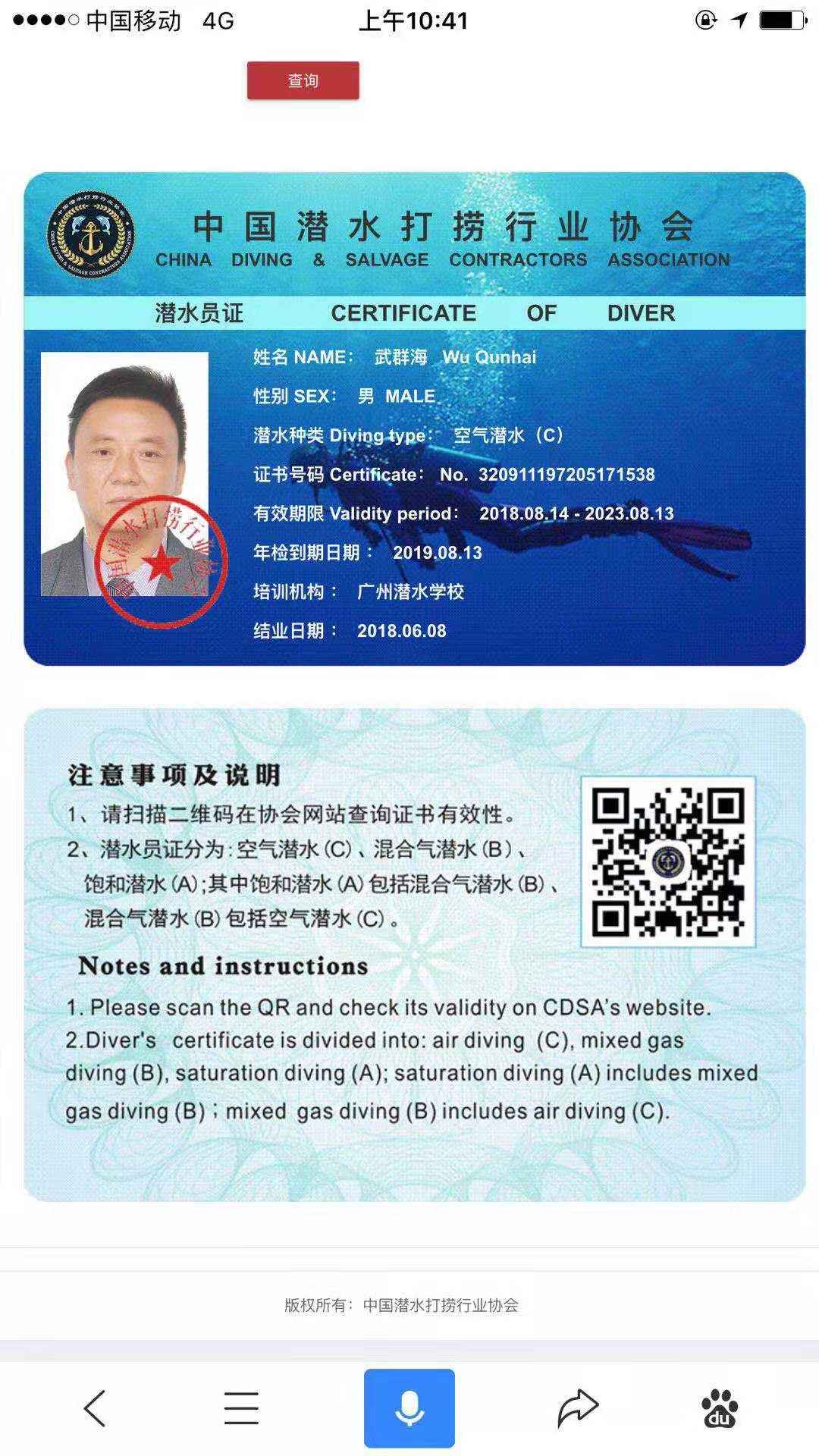 公司致力于江、河、湖、海、水庫等水下工程作業,具有良好的企業形象和強勁的技術優勢,多次出色完成各類水下工程任務如:水下打撈,潛水作業,水下切割,水下拆除,水下焊接,水下安裝,沉井施工等......,與中交二航局、三航局,交通部大橋局,華能電廠、中鐵十七局等單位是長期合作伙伴,憑借過硬的技術,優質、高效、安全的業績贏得了廣大客戶的好評。
